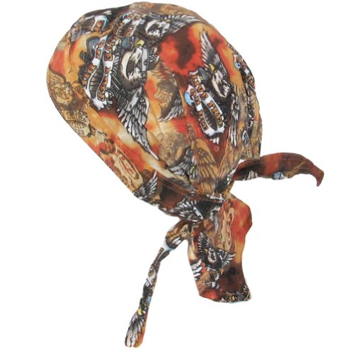 Live Free or Die AMERICAN BALD EAGLE, BANDANA SEWN - FITTED MOLDED BANDANNA, BIKER SKULL HAT CAP, HEAD SCARF